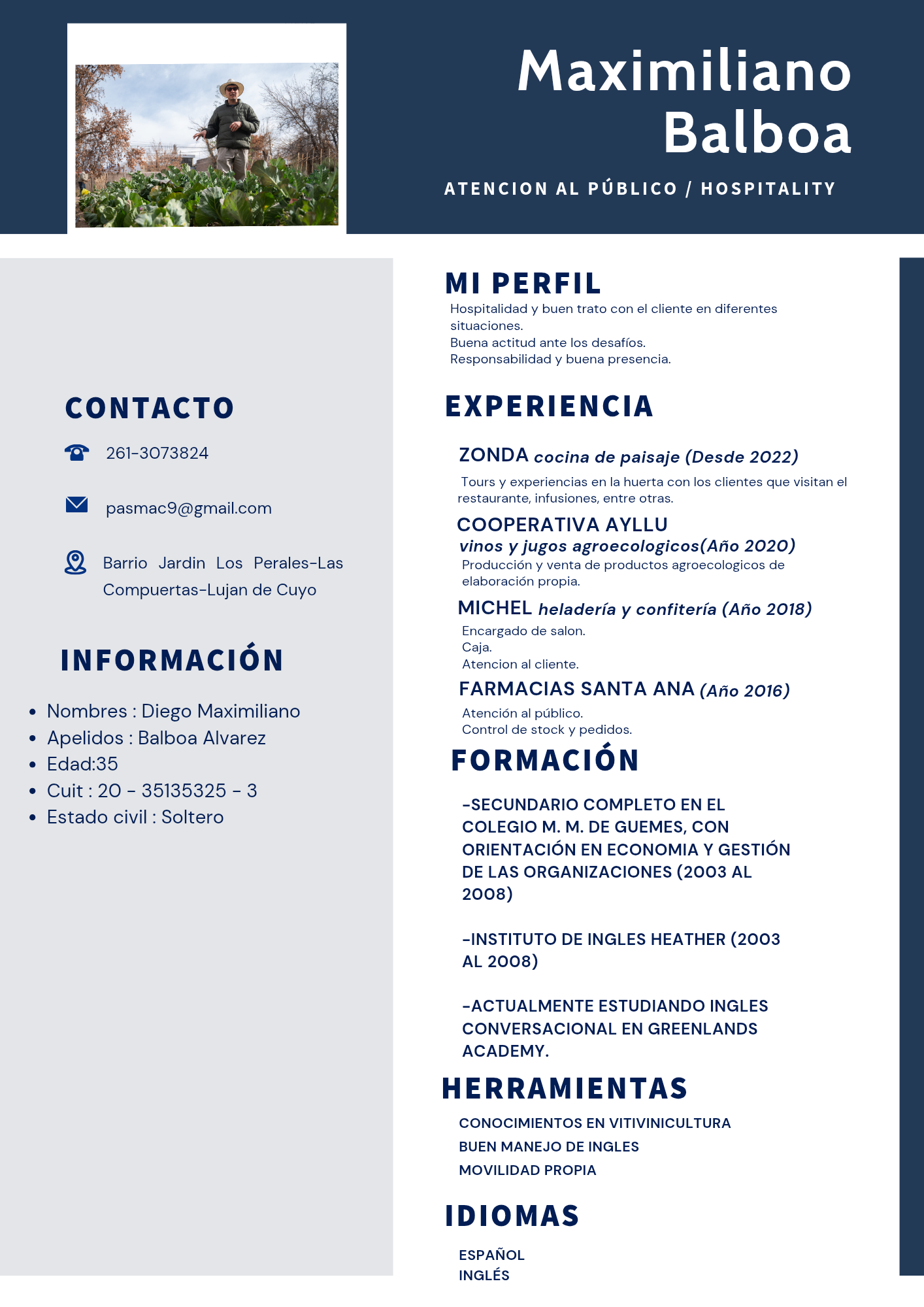 -Atencion al cliente, tours y experiencias en restaurante Zonda( cocina de paisaje)