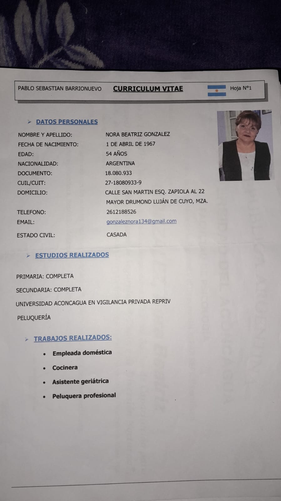 SERVICIO DOMESTICO- COCINERA EN GERIATRICO- ASISTENTE GERIATRICA- PELUQUERA PROFESIONAL