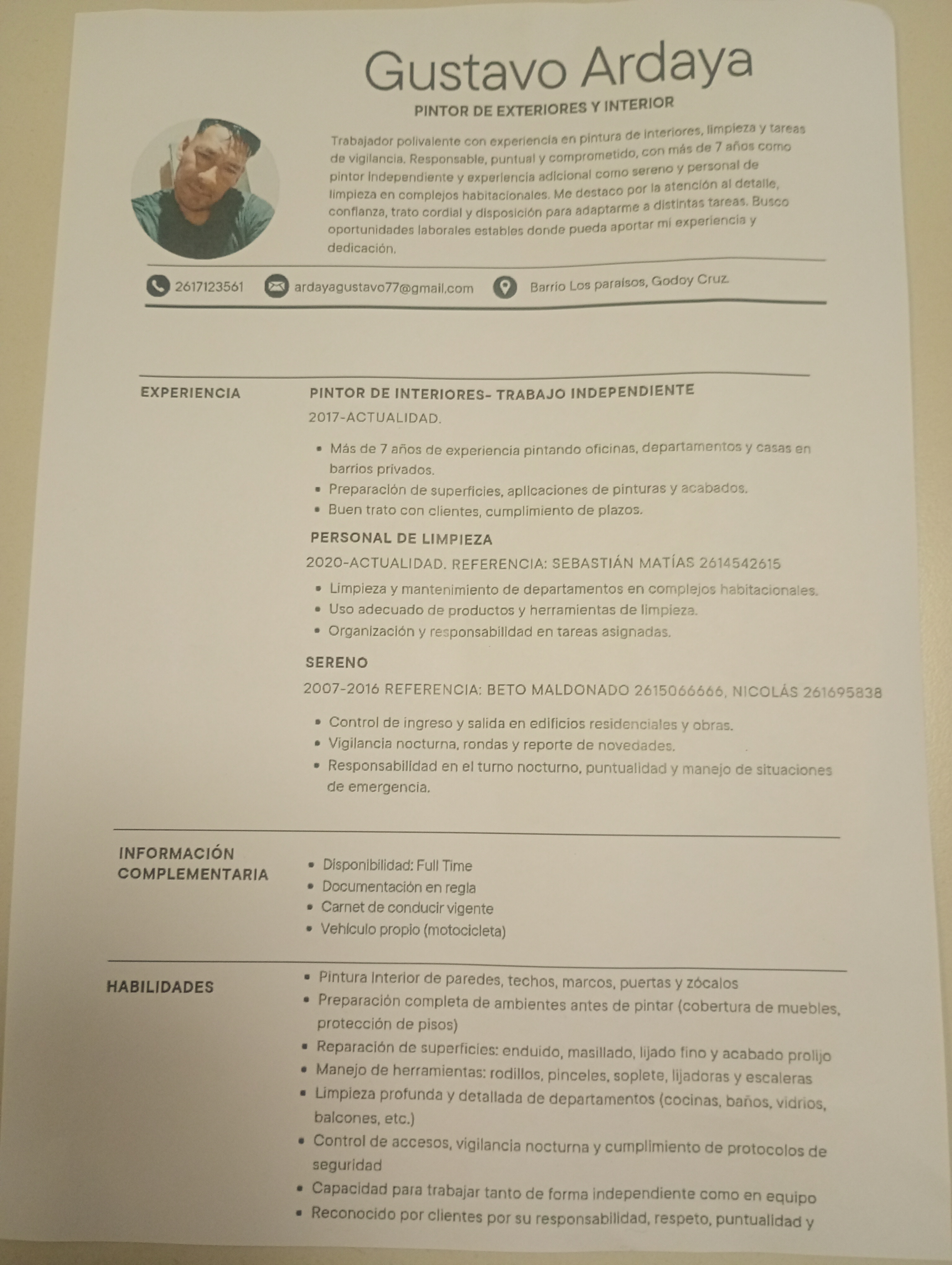 - Lugar de residencia actual : Godoy Cruz