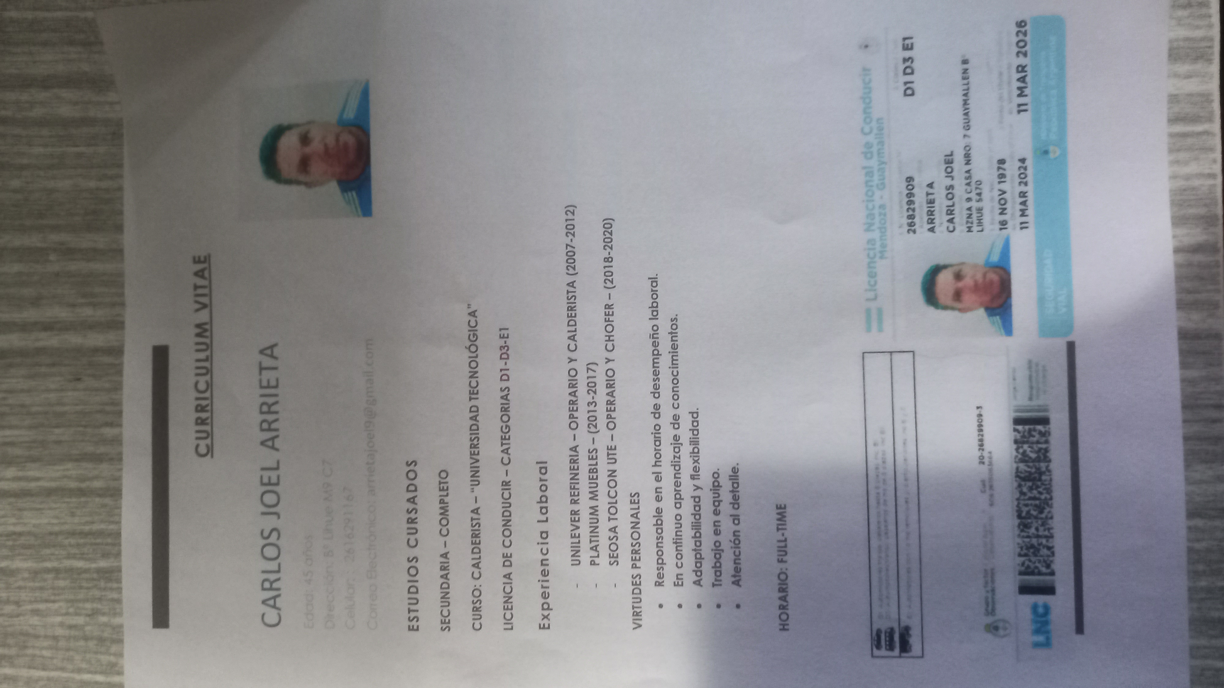 - Lugar de residencia actual : Guaymallen