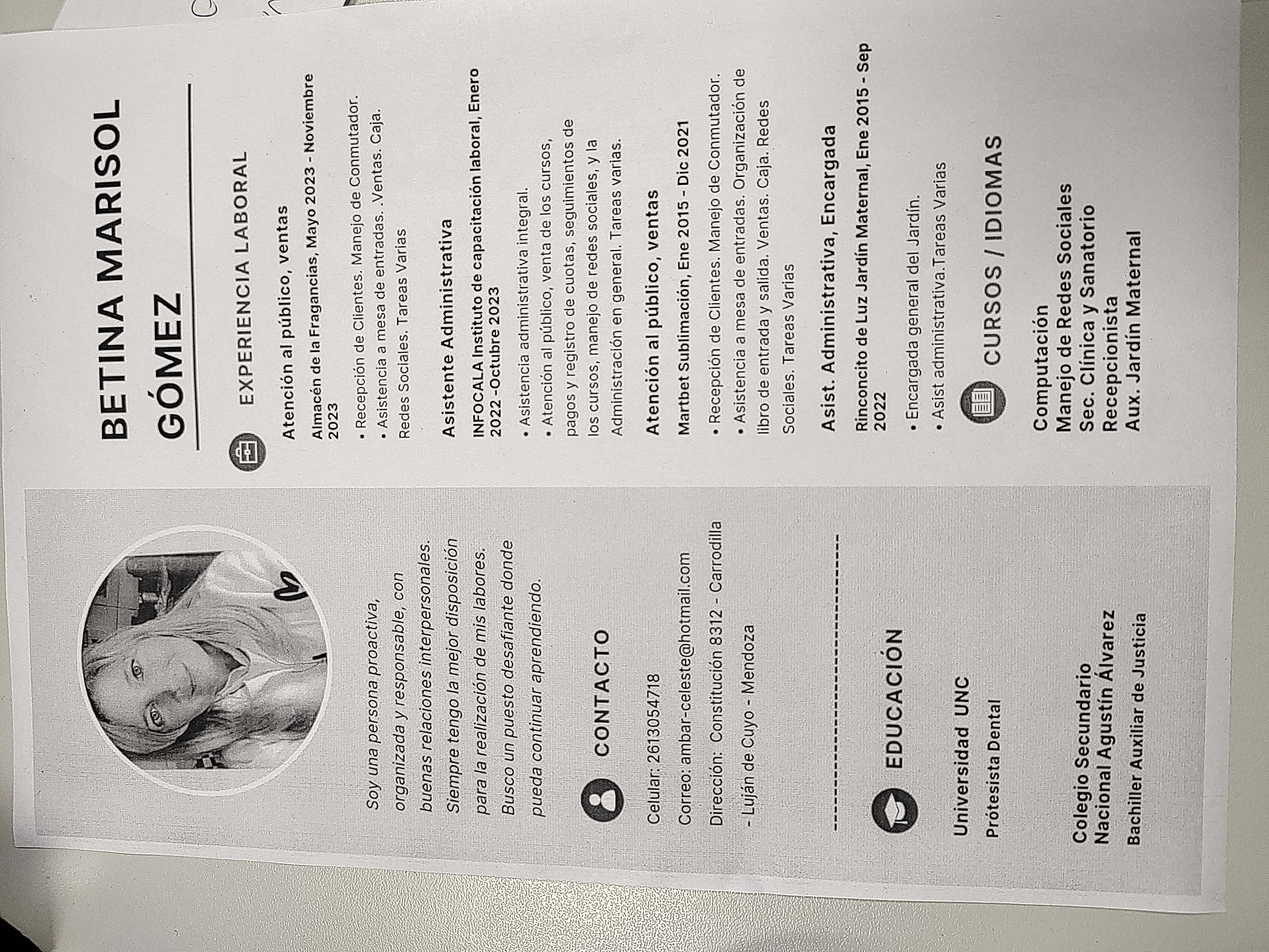 Tecnica en prótesis dental, cajera, atención al público, secretaria administrativa, vendedora
