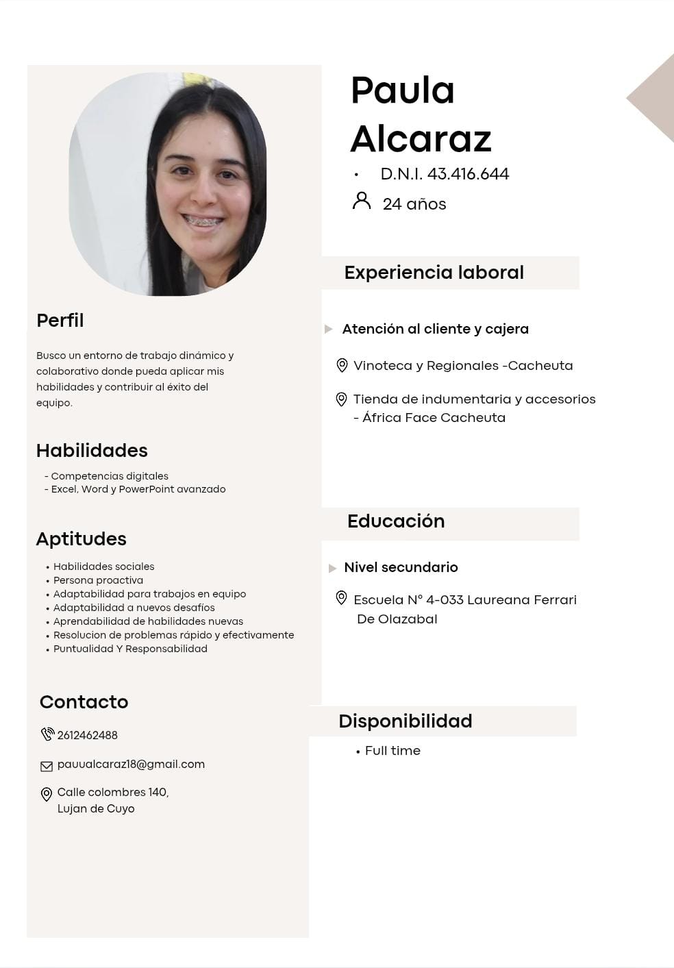 - Lugar de residencia actual : Lujan de cuyo