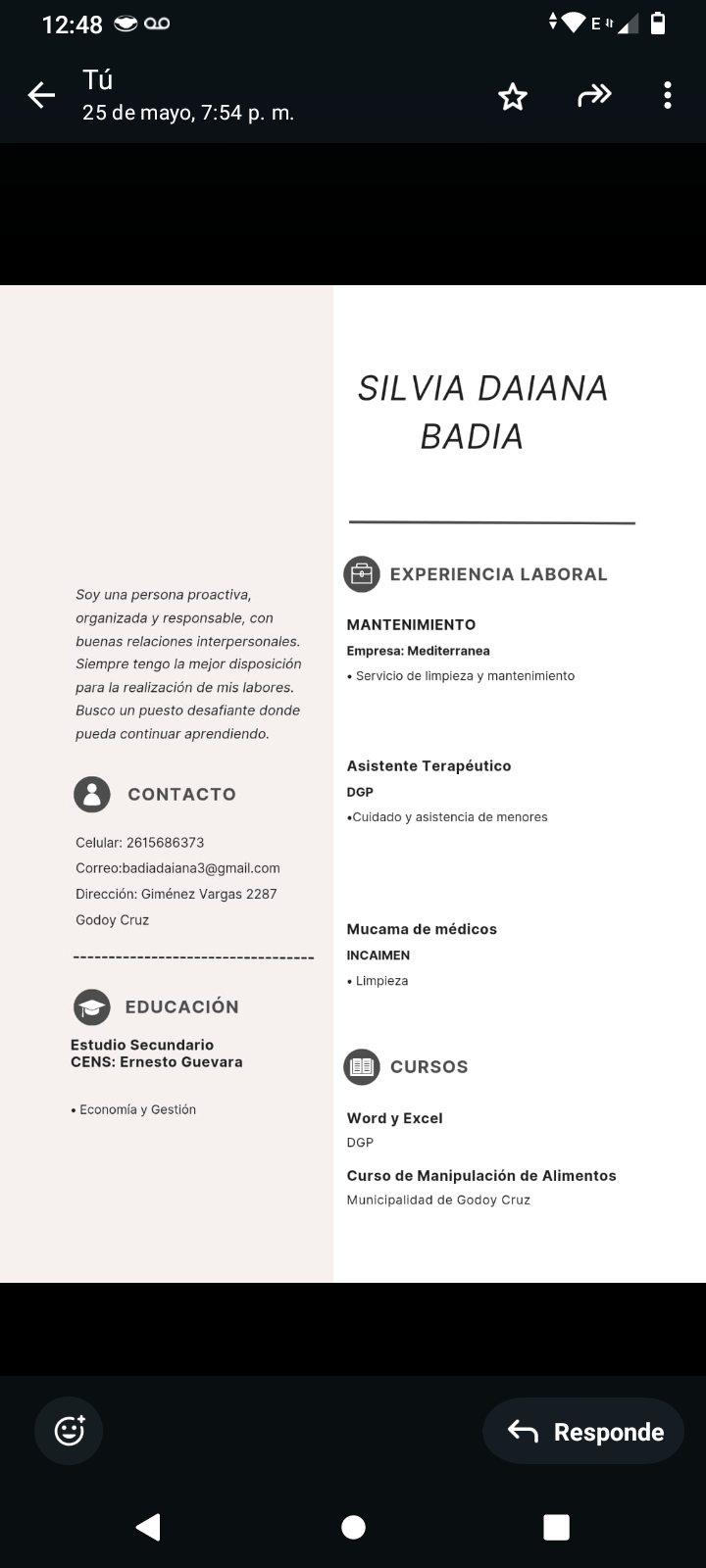 - Número de contacto : 02615686373