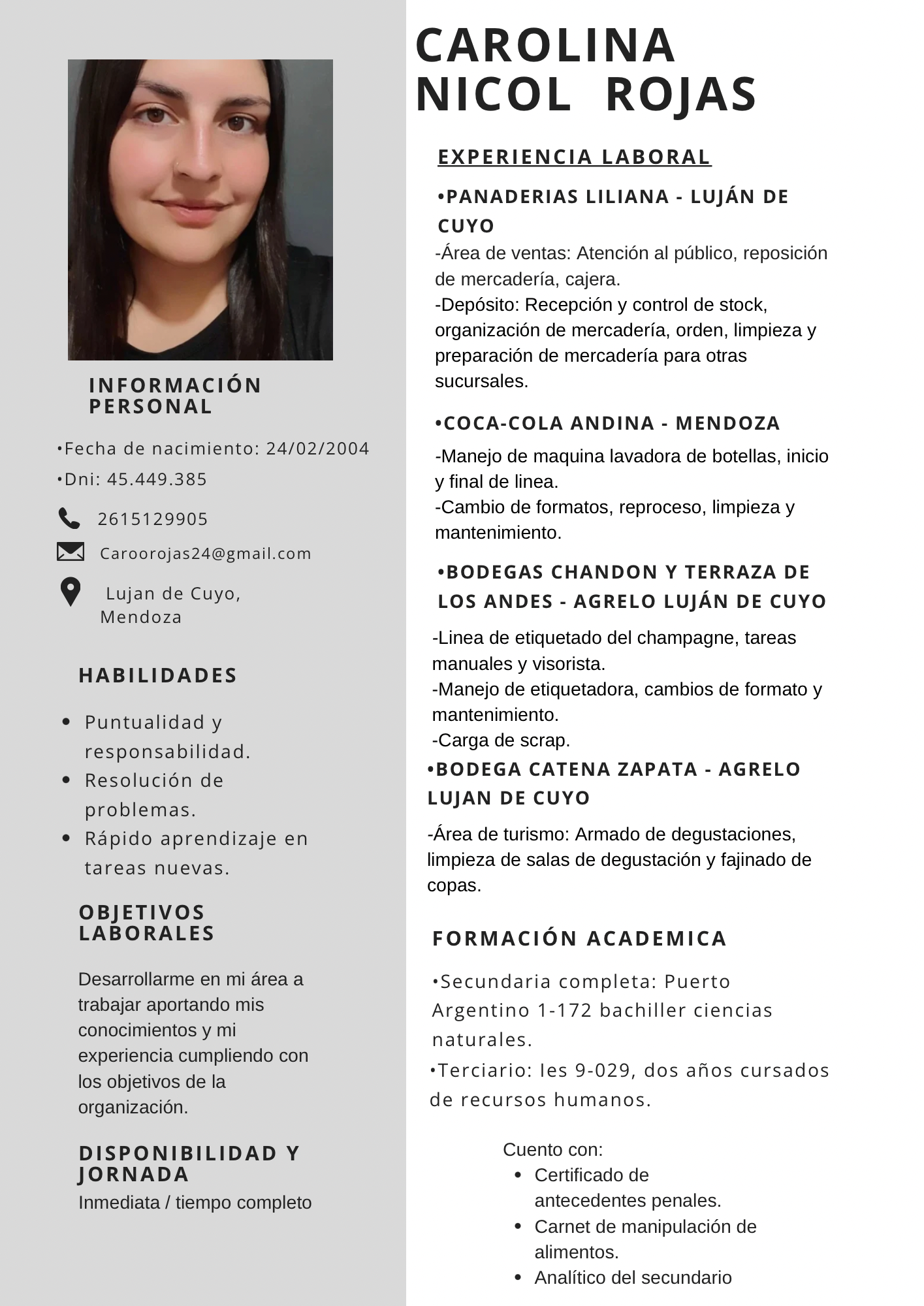 - Lugar de residencia actual : Lujan de Cuyo Agrelo